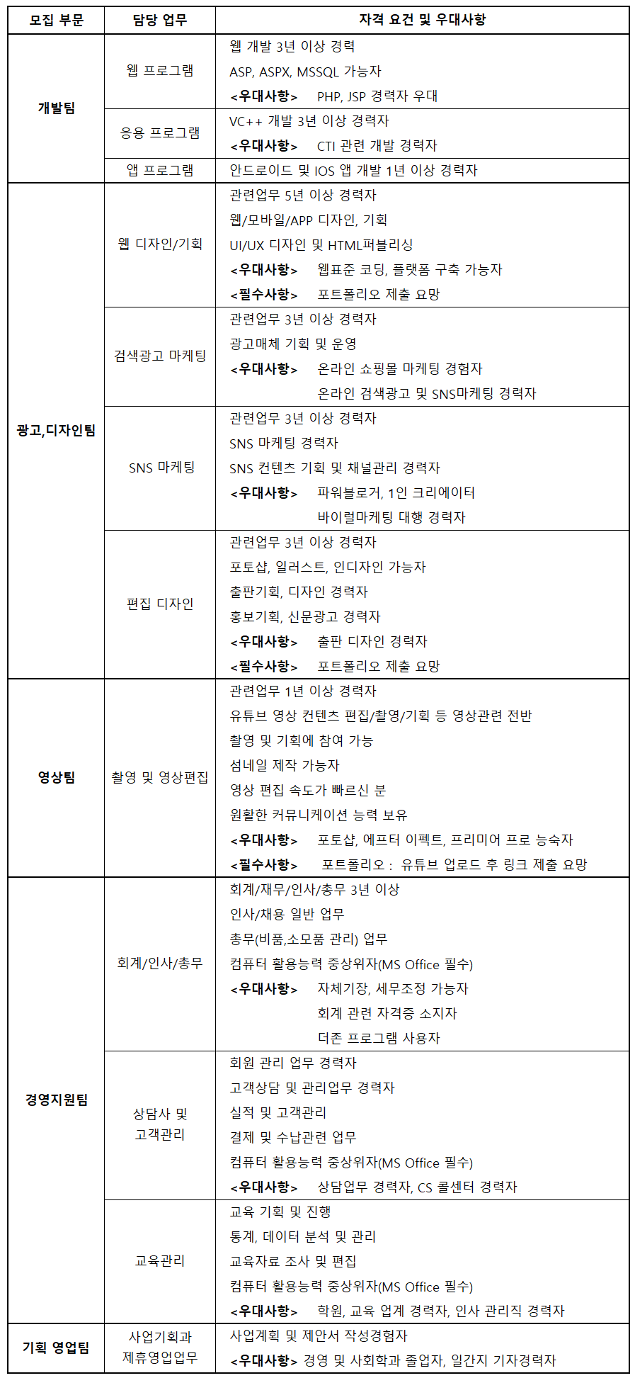 ±âȹ ¹× ¸¶ÄÉÆÃ ¾÷¹«¸¦ ´ã´çÇÒ Á÷¿øÀ» ¸ðÁýÇÕ´Ï´Ù.