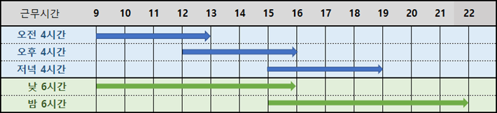 1) ÁÖ 5ÀÏ, ÇÏ·ç 4~6½Ã°£±Ù¹« ¼±ÅÃ